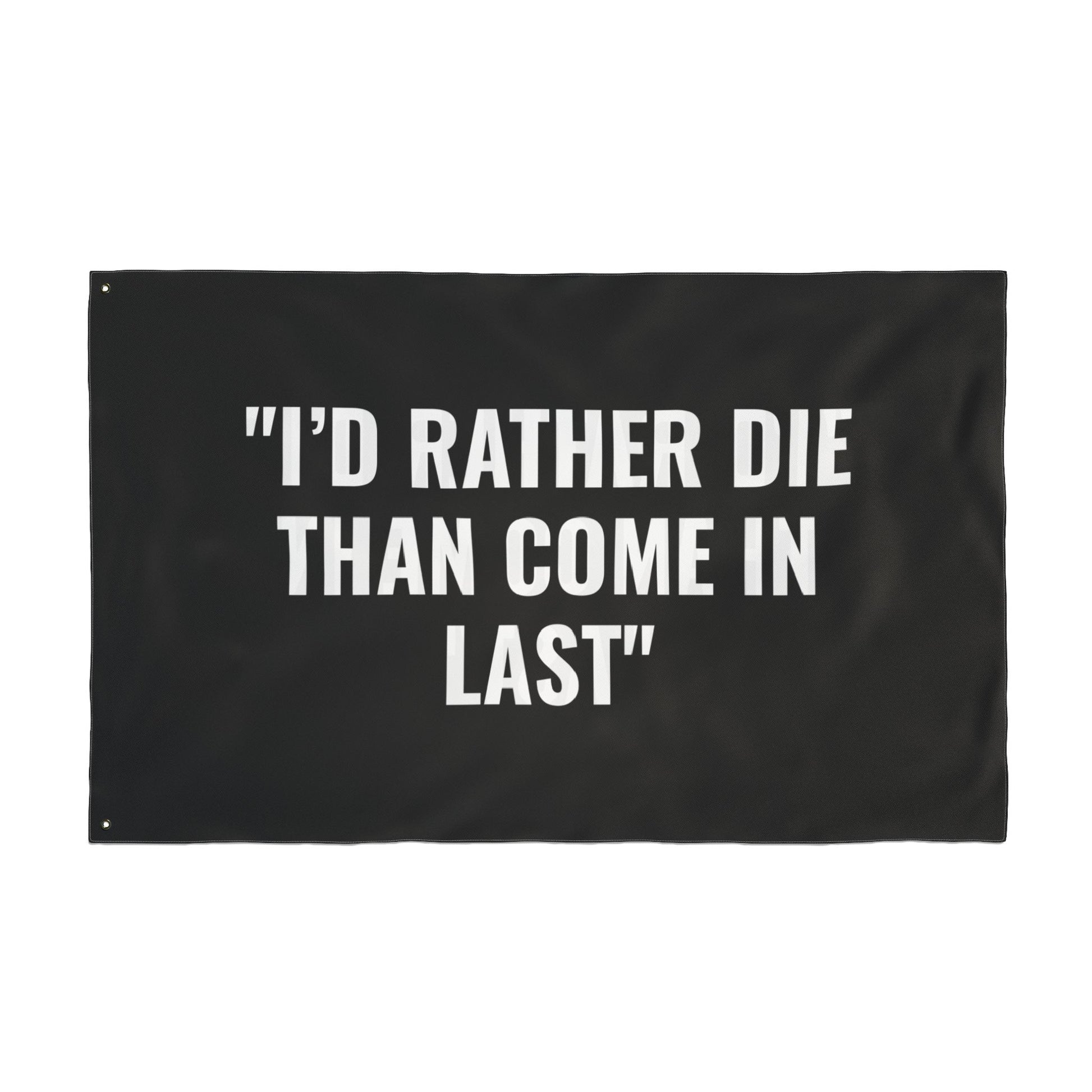 “I’D RATHER DIE THAN COME IN LAST” Flag | Black